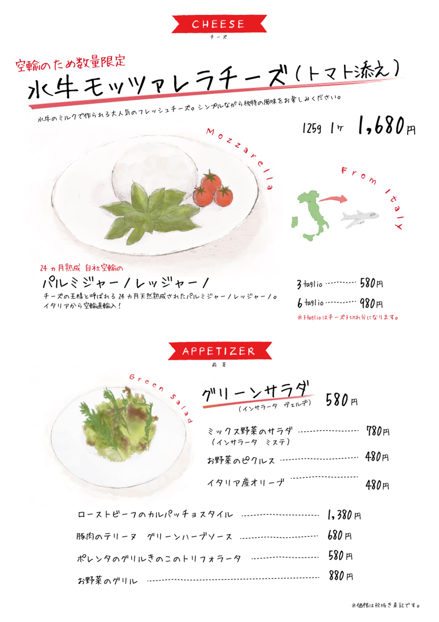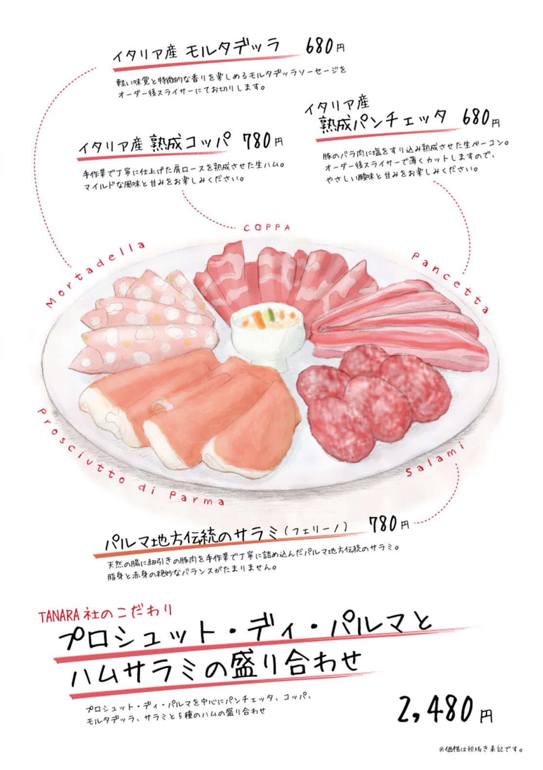 グランフロント大阪の「生ハム専門店マンマパルマ」のメニューを制作しました