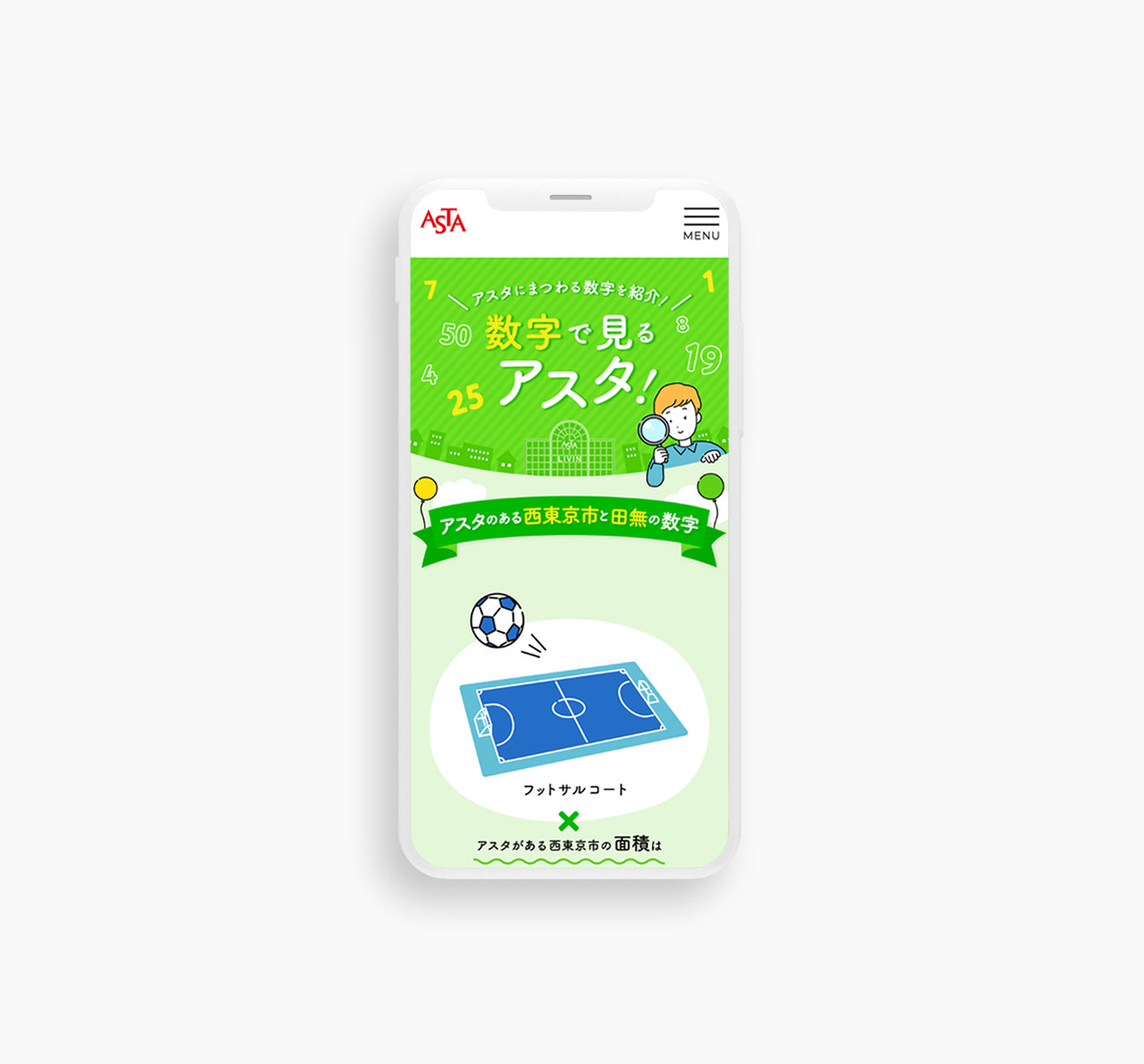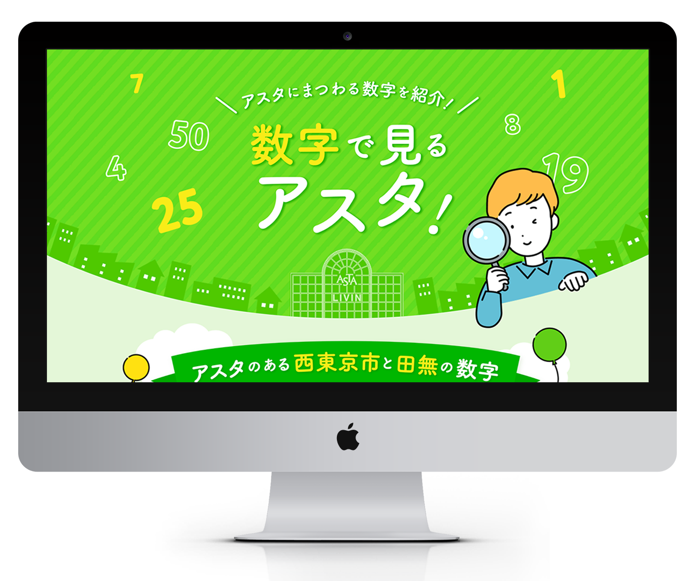 西東京市の田無駅直結のアスタ専門店街の創立25周年記念に伴い、アスタの数字にまつわる特集ページを制作しました。